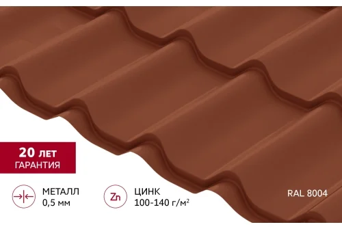 Металлочерепица Классик ("Classic") v01 0,5 Satin RAL 8004 терракота