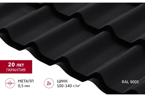Металлочерепица Классик ("Classic") v01 0,5 Satin RAL 9005 черный
