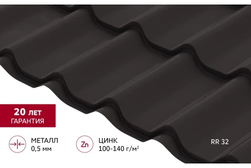 Металлочерепица Классик ("Classic") v01 0,5 Satin RR 32 темно-коричневый