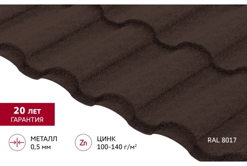 Металлочерепица "Кредо" ("Kredo") v01 0,5 Drap TX RAL 8017 шоколад