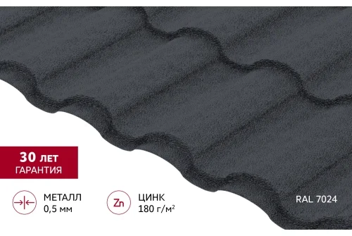 Металлочерепица "Кредо" ("Kredo") v01 0,5 PurLite Matt RAL 7024 мокрый асфальт