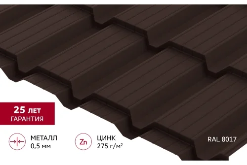 Металлочерепица "Квадро профи (Верховье)" ("Quadro Profi") v01 0,5 Atlas X RAL 8017 шоколад