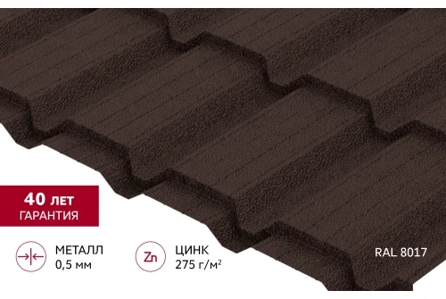 Металлочерепица "Квадро профи (Верховье)" ("Quadro Profi") v01 0,5 PurPro Matt 275 RAL 8017 шоколад