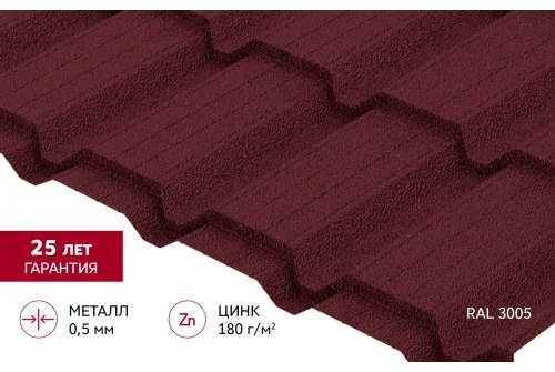 Металлочерепица "Квадро профи (Верховье)" ("Quadro Profi") v01 0,5 Satin Matt TX RAL 3005 красное вино