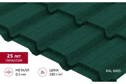 Металлочерепица "Квадро профи (Верховье)" ("Quadro Profi") v01 0,5 Satin Matt TX RAL 6005 зеленый мох