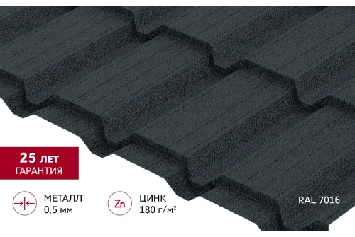 Металлочерепица "Квадро профи (Верховье)" ("Quadro Profi") v01 0,5 Satin Matt TX RAL 7016 антрацитово-серый