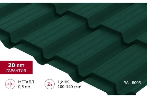 Металлочерепица "Квадро профи (Верховье)" ("Quadro Profi") v01 0,5 Satin RAL 6005 зеленый мох