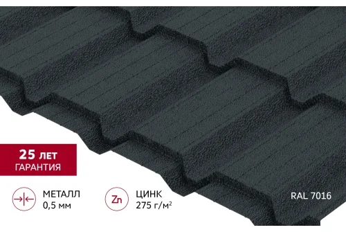 Металлочерепица "Квадро профи (Верховье)" ("Quadro Profi") v01 0,5 Velur X RAL 7016 антрацитово-серый