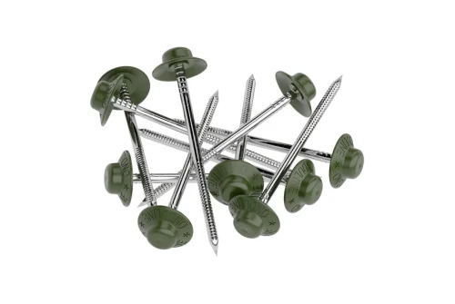 Гвозди с литой шляпкой Ондулин 75 мм зеленые