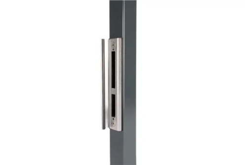 Алюминиевая ответная планка для врезных замков типа Hybrid. Эта уникальная ответная планка в комплекте с замком типа Hybrid, гарантирует надежное запирание ворот. Установка на стальные или алюминиевые столбы производится с помощью элементов быстрого монтажа Quick-Fix.