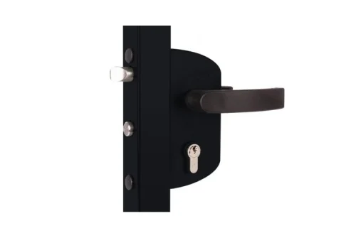 Экономичный замок для ворот и калиток. Корпус - полиамид, механизм выполнен из нержавеющей стали.