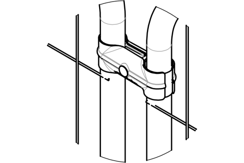 Достаточно прикрутить ролик на нижнюю часть столба и хомут Clamp 38 на верхнюю (хомут выполняет роль петли, в которой прокручивается столб при открывании и закрывании).