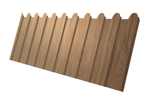 Новая форма профнастила с фигурной вырубкой по верхнему краю добавляет привлекательный вид ограждению.