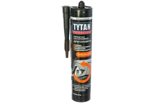 Каучуковый герметик для кровли TYTAN PROFESSIONAL подойдет для различных видов кровельной черепицы, фартуков, металлических и ПВХ водостоков, сливных труб. Герметик создает эластичный шов.