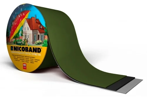 Герметизирующая лента Никобaнд (NICOBAND) получают путем одностороннего нанесения на фольгированною УФ — стойкую пленку самоклеящегося битумно-полимерного вяжущего, состоящего из битума, полимерного модификатора и специальных адгезионных добавок.