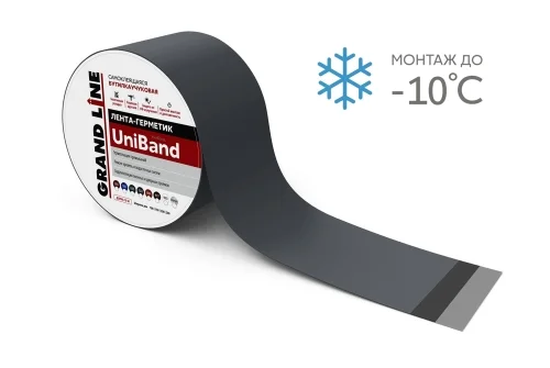 UniBand — цветная лента-герметик с бутилкаучуковым клеевым слоем. Наличие бутилкаучукового слоя способствует отличной герметизации, алюминиевая фольга обеспечивает дополнительную защиту от УФ-лучей, что увеличивает срок ее эксплуатации.