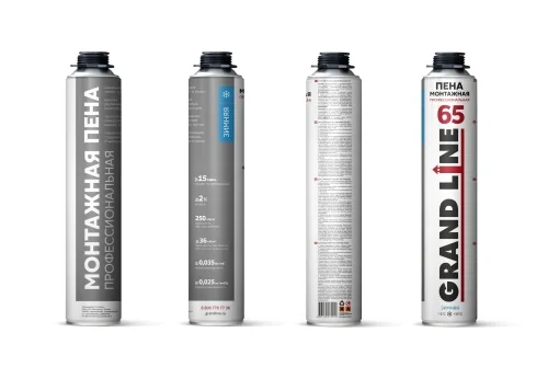 Пена монтажная профессиональная Grand Line зимняя поставляется в металлических баллонах по 1000 мл (16 шт в упаковке).