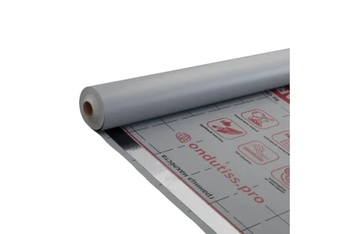 Умная двухслойная гидроизоляционная плёнка серого цвета с интегрированной клеящей лентой для защиты неутеплённых кровель с металлическим или иным покрытием, полов влажных помещений, утеплённых цокольных перекрытий, а также для пароизоляции зданий. Значительно снижает риск образования наледи и сосулек, отводя тепловой поток от кровли.