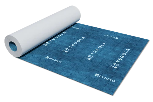 Ковер подкладочный Tegola Startbar P - с разметкой создан для дополнительной гидроизоляции и временной защиты скатных крыш (с любым покрытием) с уклоном более 20 градусов.