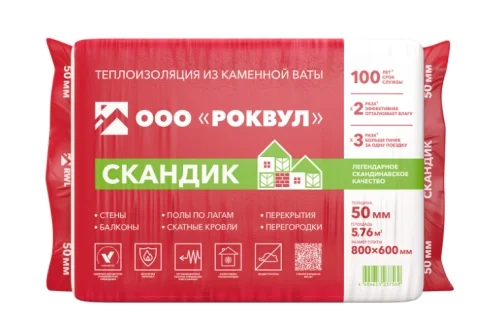 Утеплитель RockWool Лайт Баттс Скандик 800х600х50 (12 шт/пач. 5,76м2; 0,288м3; 24 пач/пал)