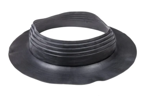 Гибкий уплотнитель из EPDM-резины допускает тепловые и механические колебания, герметизируя отверстие в кровле. Запатентованное рифление и специальная обработка фланца обеспечивают надежное соединение с битумным материалом и максимально большую площадь поверхности уплотнения. Ширина фланца 150 мм соответствует Европейским строительным нормам. Комплектуются металлическими хомутами STAINLESS.