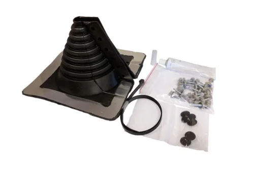 Гибкий уплотнитель из EPDM - резины с фланцем, имеющим алюминиевое покрытие, допускает тепловые и механические колебания, герметизируя отверстие в кровле.