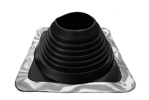 Гибкий уплотнитель из EPDM - резины с фланцем, имеющим алюминиевое покрытие, допускает тепловые и механические колебания, герметизируя отверстие в кровле.
