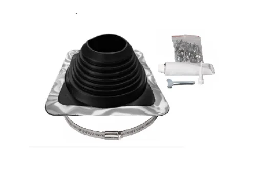 Гибкий уплотнитель из EPDM - резины с фланцем, имеющим алюминиевое покрытие, допускает тепловые и механические колебания, герметизируя отверстие в кровле.
