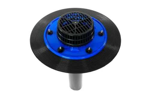 Использование пластикового крепежа (гаек и болтов) в конструкции воронки позволяет производить замену кровли без демонтажа элементов водоприемной системы. Материал кровельного ковра надежно фиксируется между пластиковым прижимным фланцем и пластиковой чашей болтом с гайкой. Воронка поставляется в двух вариантах: с обогревательным кабелем и без обогрева.